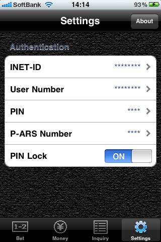 Version 1.2[2011.02.11] * It functions so that it is changed from a bet input screen to an odds screen of PAT and adds it. * It functions to be able to manage the plural (5 at the maximum) PAT accounts and adds it. * It functions to be able to set an automatic rotation (portrait/landscape) and adds it. * With a bet input screen, I revise only some light movement at the time of the horse number choice. * I revise it so that application do not down at the time of Internet non-connection. |